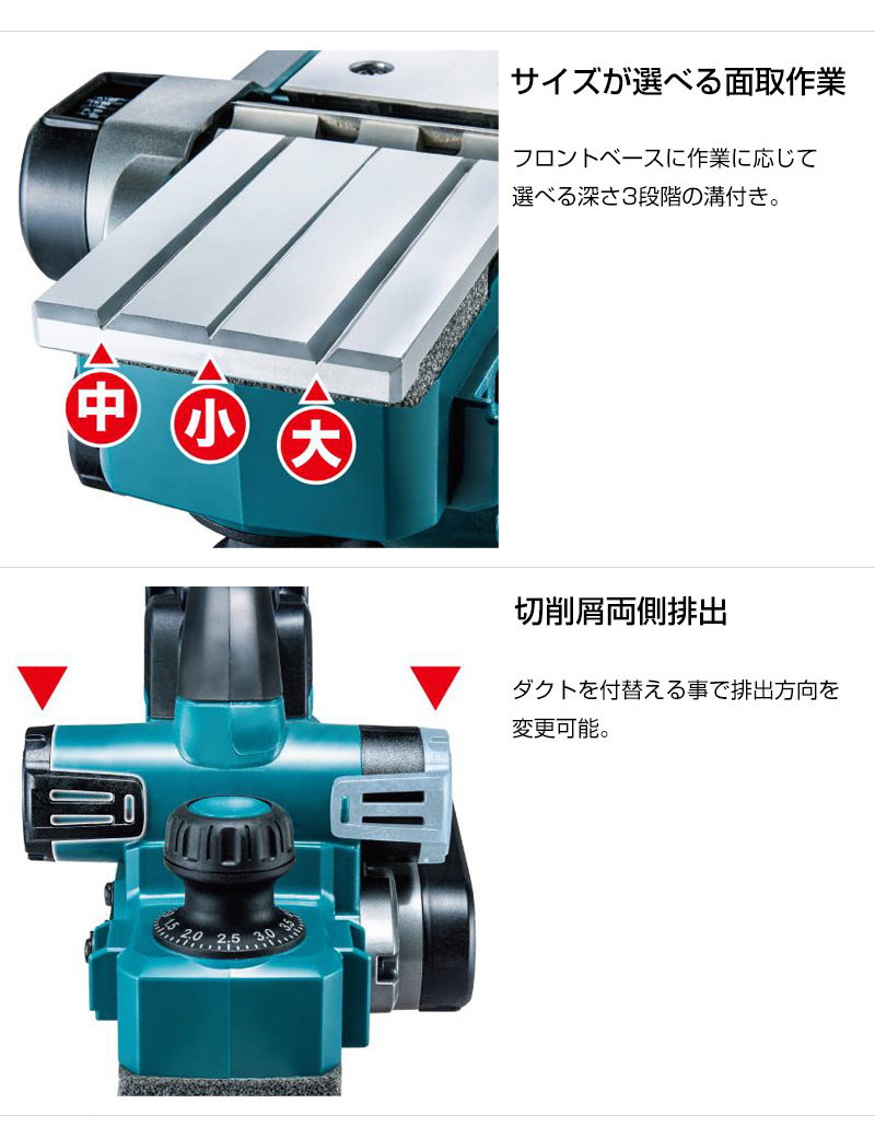 【サイズが選べる面取作業】フロントベースに作業に応じて選べる深さ3段階の溝付き。