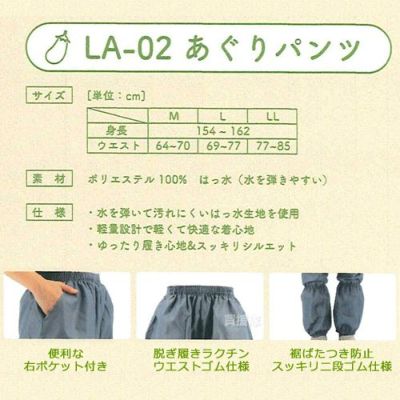 - 品番(ヤッケ)LA-01、(パンツ)LA-02