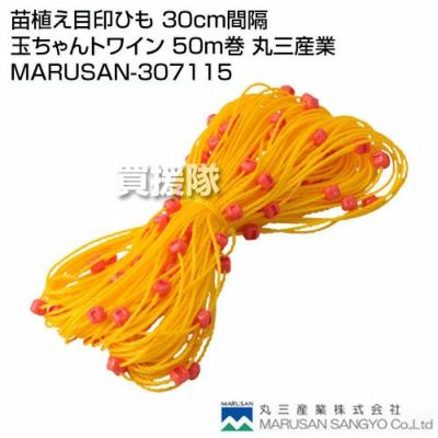 【特徴】 ●苗の植え付けの際の目印になる為、ひもを張るだけで株間が分かる。 ●農業用ハウスの設置作業や水中等での目印に使用できる。 ●その地、産業用・家庭用、様々な用途で活用出来る。 【使用例】 ◎ひものスタートと最後の輪っかを支柱等にセットし、玉ちゃんを目安に苗を植えたり、目印にして作業が出来る。