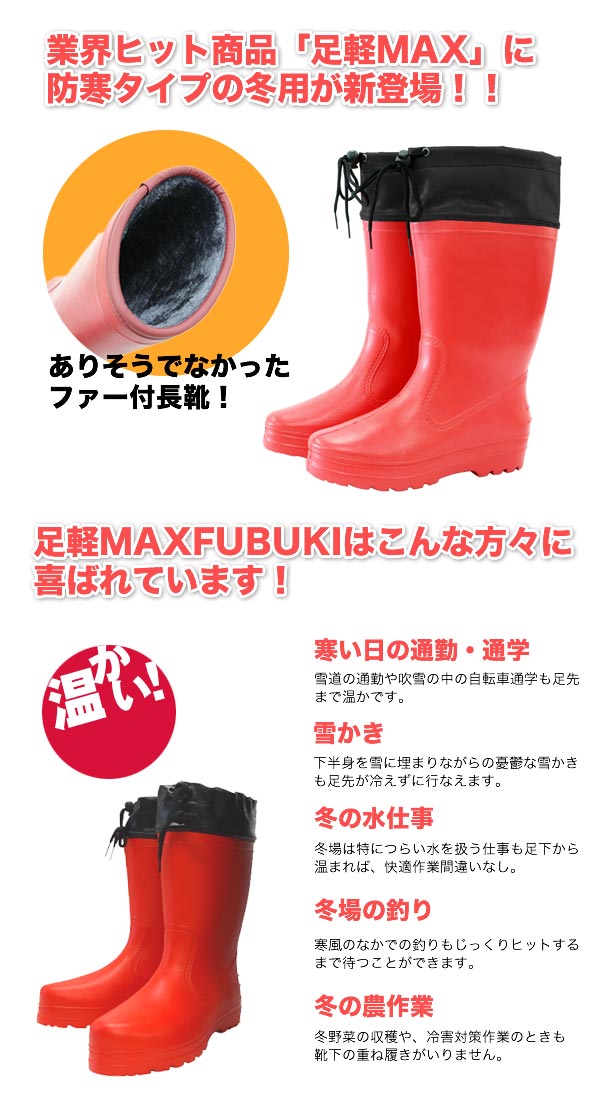 【長靴 子供 子ども 小学生 キッズ KIDS 用 レディース 女性 寒さ対策 防寒 雪 冬 雪かき 防寒靴 人気 通学 雨の日 雨天 雨具 おしゃれ 足軽 軽い 足軽MAXFUBUKI 吹雪 フブキ】