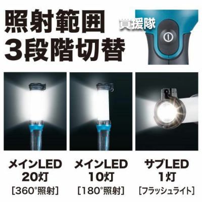 高輝度LED360度照射、先端ライト、USB機器充電可能