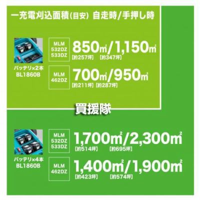 - 連続作業時間※1(自走時/約40分、手押時/約50分)別売りBL1860Bx4本