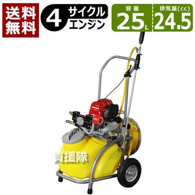 50Lでは大きすぎる・・・、電源の確保が難しい・・・という声から生まれました。 ●どこでも使えるエンジン式! ●除草剤の散布に ●畑・庭の防除に! ホンダ製小型4サイクルエンジン搭載 音が静かで排ガスがキレイです。 2サイクルに比べトラブルが少なくメンテナンス性も向上。 傾斜地のような圃場条件が悪い場所や簡易的な2台目としてお手軽にお使いいただけます。