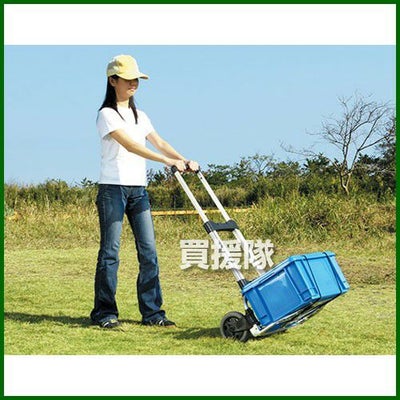 ■耐荷重 125kg ◎荷台のプレートを開くと、収納されているタイヤも連動して開きます。プレートを閉じるとタイヤも自動的に収納されます。 ◎取っ手はボタンを押し、引き出すとロックされます。(長さ調節は一段階のみ)