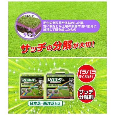 パラパラ撒くだけで病原菌の巣窟となる「サッチ」を分解し、病気にかかりにくくします。