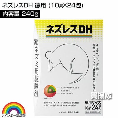 ネズミが好む食品を配合した、食いつきの良いネズミ駆除剤です。 使い方は簡単で、ネズミの出る台所・床下・天井裏・ゴミ箱周辺などに袋を破らずそのまま配置するだけです。 3~5日間、継続してネズミに食べさせることにより効果が発揮されるので、警戒心も持たせません。 特に学習能力が高く集団で生活するクマネズミなどの家ネズミに効果的です。 袋ごと巣などに持ち帰って食べるので、ネズミの集団を効果的に駆除できます。