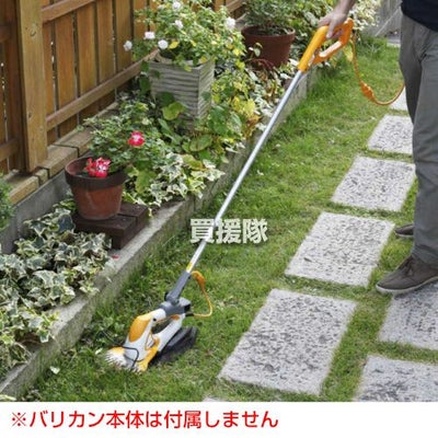 電気式バリカン用、ポールを取付けることによりしゃがむことなく刈込み作業が出来ます ハンディタイプのバリカンにポールとスライダーを取付けると立った姿勢でラクに芝刈りできます