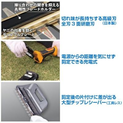 - 付属品ブレード(300mm高級刃・高剛性タイプ)(本体取付)、ブレードカバー、チップレシーバ(本体取付)、電池パック×1、充電器(UBC-1803L)