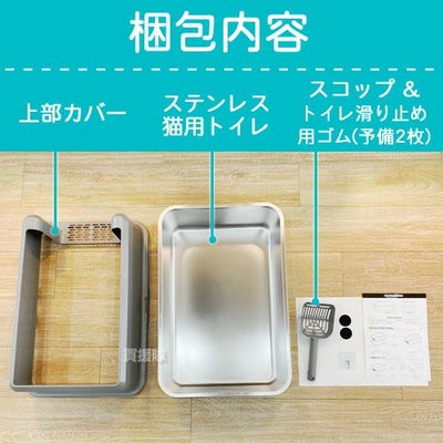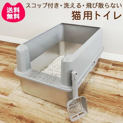 【ネコ ねこ トイレ 猫用 キャットトイレ ペット 用 飛び散らない お手入れしやすい 清潔 掃除しやすい スコップ 本体 トイレセット オープン タイプ ハーフカバー ステンレス鋼 錆びにくい】