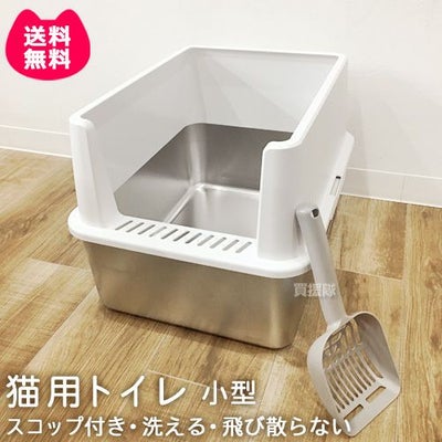 【ネコ ねこ トイレ 猫用 子猫 仔猫 小型 省スペース コンパクト キャットトイレ ペット 用 飛び散らない お手入れしやすい 清潔 掃除しやすい スコップ 本体 トイレセット ハーフカバー ステンレス鋼 錆びにくい】
