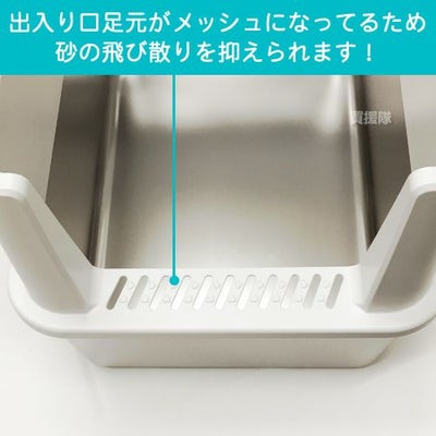 ●ステンレス製だから丈夫で錆びにくい! ●丸洗いできるので清潔に保てます ●出入り口の足元のメッシュで砂が落ちるので、飛散が抑えられます ●スコップ付き