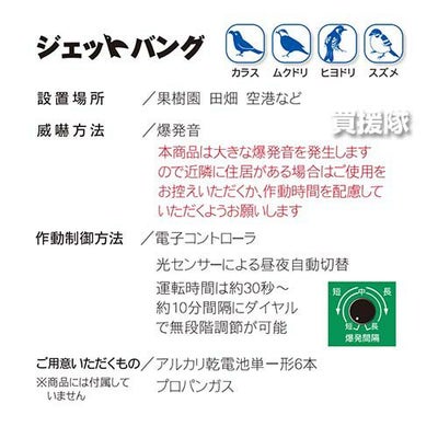 【威嚇方法 爆発音 鳥害 防鳥 対策 カラス ムクドリ ヒヨドリ スズメ 果樹園 田畑 空港 旧品番 バードキラー LPE-5】