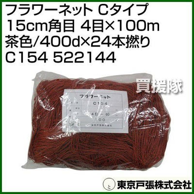 東京戸張 フラワーネット Cタイプ 15cm角目 4目×100m [茶色/400d×24本撚り] C154 522144 [カラー:茶色]