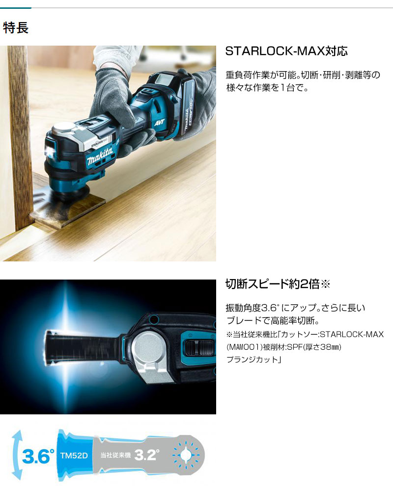 振動角度3.6゚にアップ。さらに長いブレードで高能率切断。