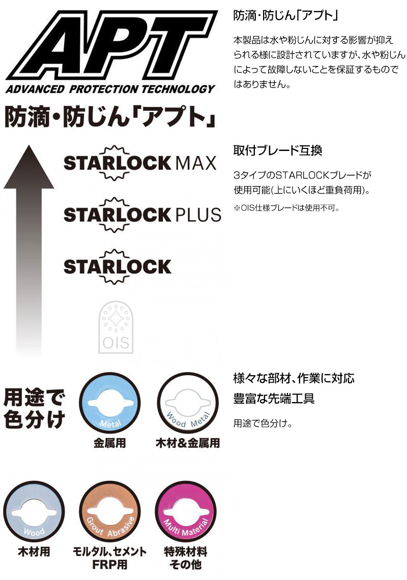 【防滴・防じん「アプト」】本製品は水や粉じんに対する影響が抑えられる様に設計されていますが、水や粉じんによって故障しないことを保証するものではありません。