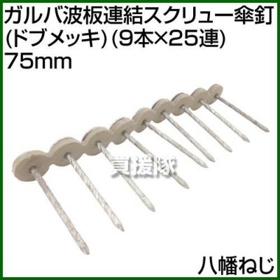 八幡ねじ ガルバ波板連結スクリュー傘釘(ドブメッキ)(9本×25連) 75mm [サイズ:75mm]