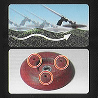 合成樹脂素材を採用する事で実現できたこの耐摩耗性、耐久性を、従来からある一般的な金属安定板と比較テスト。