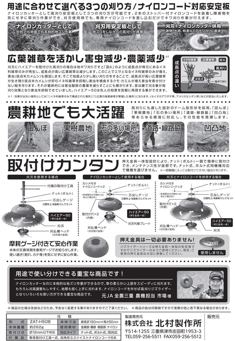 ●短く刈っても、長く刈っても1ヶ月後の草丈同じ! ●地ズリ作業の出来る本格的なナイロンカッターです。 ●用途に合わせて選べる刈り方で、ナイロンコードでも刃でも短くから高くまで刈高調整も可能なハイブリッド構造でエアーシリーズのフラッグシップ機種です。
