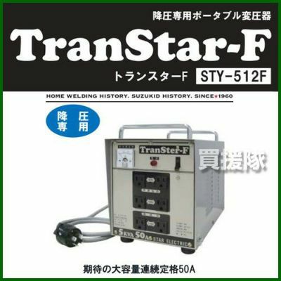 他の画像を見る 【送料無料】200Vを100Vと115Vを出力できる変圧器! スター電器 トランスターF変圧器 STY-512F 買援隊 特別価格 ¥ 67,892 税込 カートに入れる お気に入りに登録する