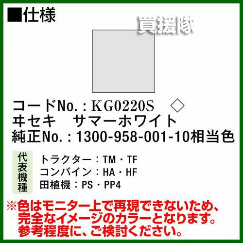 他の画像を見る 農機などの補修用に KBL 農業機械用塗料用 タッチアップスプレー KG0220S [ヰセキ:サマーホワイト][内容量420ml] 買援隊 特別価格 ¥ 1,540 税込 詳細を見る お気に入りに登録する