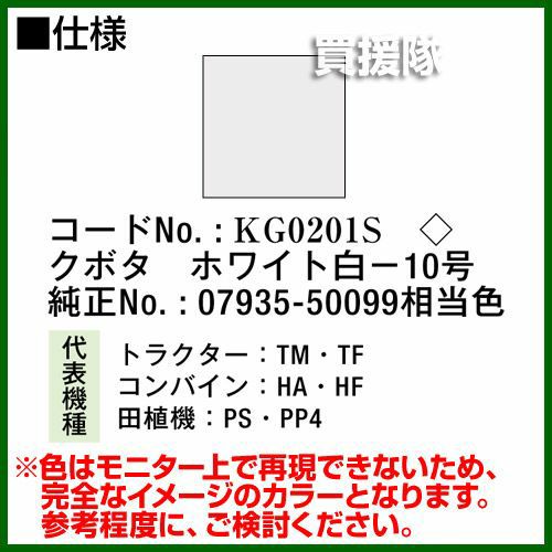 他の画像を見る 農機などの補修用に KBL 農業機械用塗料用 タッチアップスプレー KG0201S [クボタ:ホワイト白-10号][内容量420ml] 買援隊 特別価格 ¥ 1,540 税込 詳細を見る お気に入りに登録する