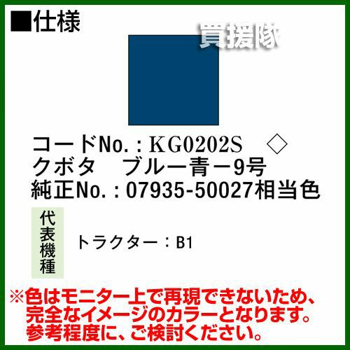 他の画像を見る 農機などの補修用に KBL 農業機械用塗料用 タッチアップスプレー KG0202S [クボタ:ブルー青-9号][内容量420ml] 買援隊 特別価格 ¥ 1,540 税込 詳細を見る お気に入りに登録する