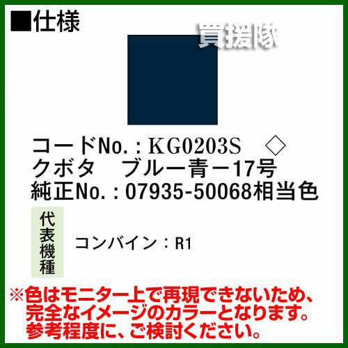 他の画像を見る 農機などの補修用に KBL 農業機械用塗料用 タッチアップスプレー KG0203S [クボタ:ブルー青-17号][内容量420ml] 買援隊 特別価格 ¥ 1,540 税込 詳細を見る お気に入りに登録する