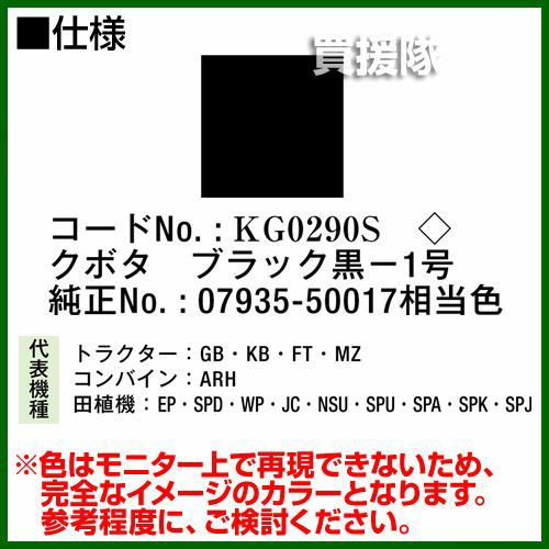他の画像を見る 農機などの補修用に KBL 農業機械用塗料用 タッチアップスプレー KG0290S [クボタ:ブラック黒-1号][内容量420ml] 買援隊 特別価格 ¥ 1,540 税込 詳細を見る お気に入りに登録する