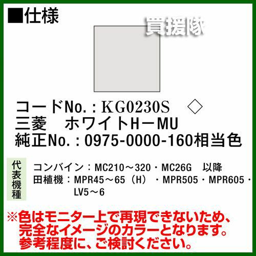 他の画像を見る 農機などの補修用に KBL 農業機械用塗料用 タッチアップスプレー KG0230S [三菱:ホワイトH-MU][内容量420ml] 買援隊 特別価格 ¥ 1,540 税込 詳細を見る お気に入りに登録する