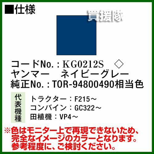 他の画像を見る 農機などの補修用に KBL 農業機械用塗料用 タッチアップスプレー KG0212S [ヤンマー:ネイビーグレー][内容量420ml] 買援隊 特別価格 ¥ 1,540 税込 詳細を見る お気に入りに登録する