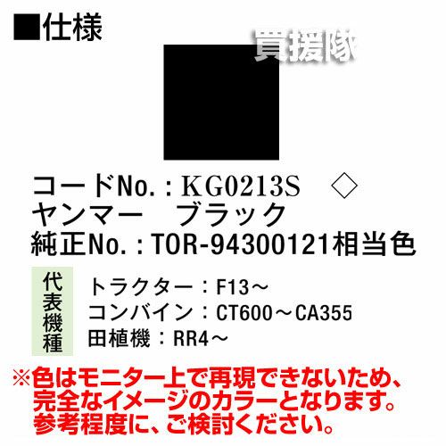 他の画像を見る 農機などの補修用に KBL 農業機械用塗料用 タッチアップスプレー KG0213S [ヤンマー:ブラック][内容量420ml] 買援隊 特別価格 ¥ 1,540 税込 詳細を見る お気に入りに登録する