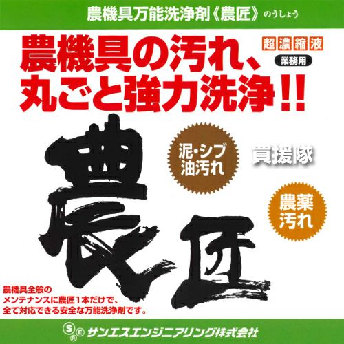 他の画像を見る 【送料無料】農機具の汚れ、丸ごと強力洗浄!超濃縮液 《法人限定》サンエスエンジニアリング 農機具万能洗浄剤 農匠 20L 買援隊 特別価格 ¥ 16,300 税込 詳細を見る お気に入りに登録する