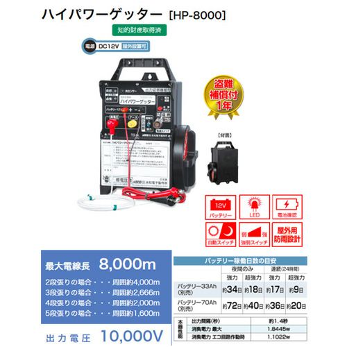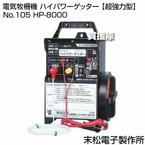 他の画像を見る 【送料無料】2段階の「出力切替スイッチ」 《法人限定》末松電子製作所 電気牧柵機 ハイパワーゲッター 【超強力型】 No.105 HP-8000 買援隊 特別価格 ¥ 58,900 税込 詳細を見る お気に入りに登録する