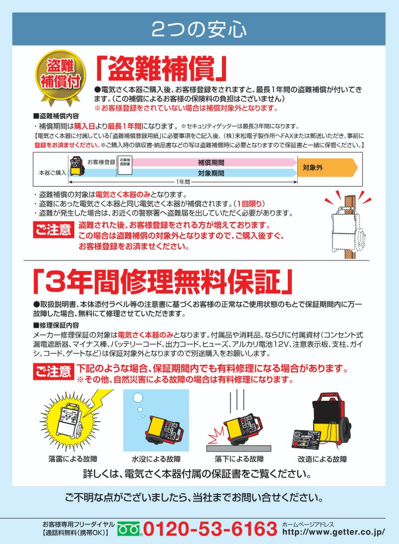 他の画像を見る 【送料無料】盗難防止機能付 セキュリティゲッター 末松電子製作所 電気牧柵機 セキュリティゲッターソーラー E No.117 SEC12-3S 買援隊 特別価格 ¥ 88,300 税込 カートに入れる お気に入りに登録する