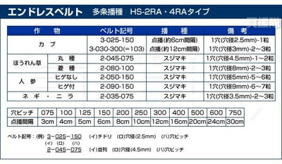 ※播種ベルトは別途取り寄せ可能です。ご希望の場合にはご連絡ください。