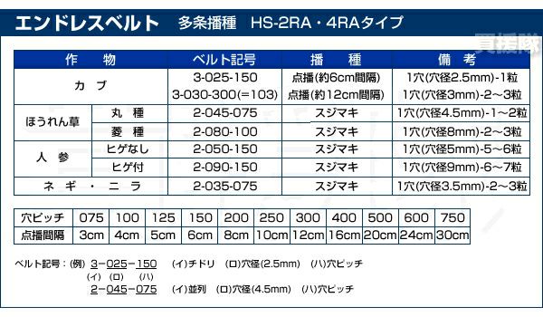 他の画像を見る HS-801、HS-802専用 L1Rベルト 向井工業 種まき機ごんべえ播種用 L1Rベルト [播種間隔16~40cm][7mm/1穴] R35-3-28 買援隊 特別価格 ¥ 2,750 税込 詳細を見る お気に入りに登録する