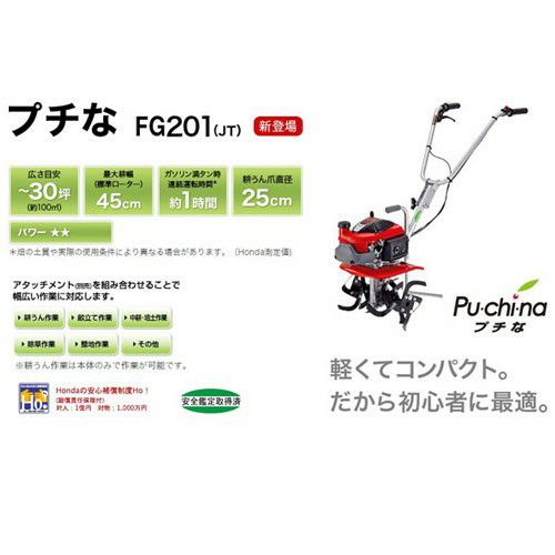 他の画像を見る 【送料無料】 耕運機プチなと畝立器アタッチのお得なセット♪豪華特典あり! 【30坪用クラス】 ホンダ 耕運機 プチな FG201 JT パープル培土器セット [メンテナンス3点セット付き] 買援隊 特別価格 ¥ 85,700 税込 詳細を見る お気に入りに登録する