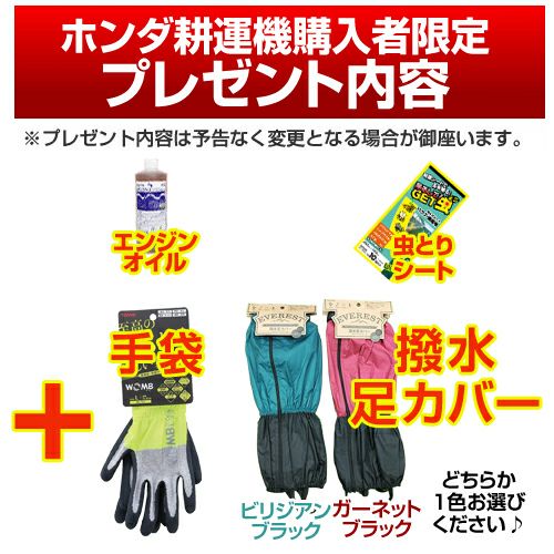 他の画像を見る 【送料無料】小さいけどパワフル、ミニ耕うん機の決定版 ホンダ耕運機 プチな ニューイエロー培土器+二輪移動タイヤ+イエロースパイラルローター450セット [メンテナンス3点セット付き] 買援隊 特別価格 ¥ 113,300 税込 詳細を見る お気に入りに登録する
