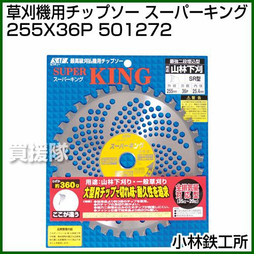 他の画像を見る 【送料無料】大型Rチップで切れ味・耐久性を追及 小林鉄工所 草刈機用チップソー スーパーキング 255X36P 501272 買援隊 特別価格 ¥ 4,450 税込 カートに入れる お気に入りに登録する