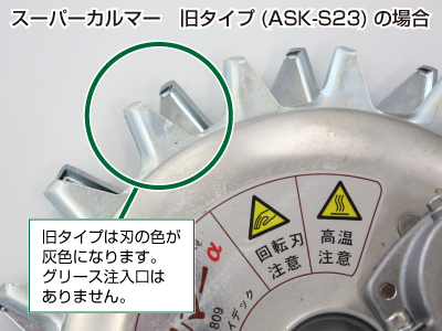 ※旧タイプ(ASK-S23)の場合は刃が灰色(シルバー)でグリースの注入口はありません。