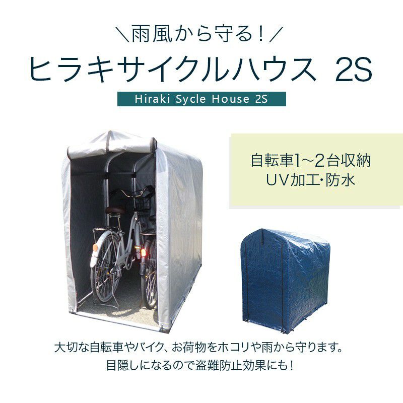 他の画像を見る 【送料無料】自転車やバイクお荷物をホコリや雨から守ります ヒラキ サイクルハウス 2.5S シルバーカバー/ネイビーカバー HRK-CH-25SA 買援隊 特別価格 ¥ 11,800 税込 在庫切れ カートに入れる お気に入りに登録する