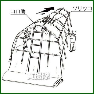 【この製品の特長】 コロ助とソリッコの併用でハウス妻面からのフィルム張りが、2人作業で簡単にできます。 フィルムを傷つけず、すばやく展張できます。 ハウスの高さ400cmまで使用可能。(400cm以上の場合は特注) ※ 画像はイメージになります。 ※ ハウス本体は付属しません。
