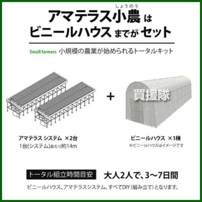 アマテラス小農は、アマテラスシステム2台とビニールハウス1棟が一式セットのトータルキットです。