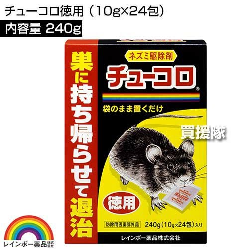 他の画像を見る 【送料無料】そのまま置くだけ簡単に使える殺そ剤です レインボー薬品 チューコロ徳用 240g(10g×24包)×80個 買援隊 特別価格 ¥ 64,000 税込 カートに入れる お気に入りに登録する