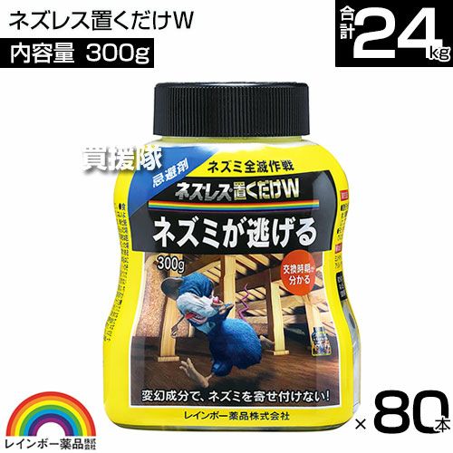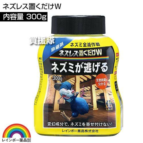他の画像を見る 【送料無料】速効性と持続性のWのニオイでネズミを忌避します レインボー薬品 ネズレス置くだけW 300g×80本 買援隊 特別価格 ¥ 39,919 税込 カートに入れる お気に入りに登録する