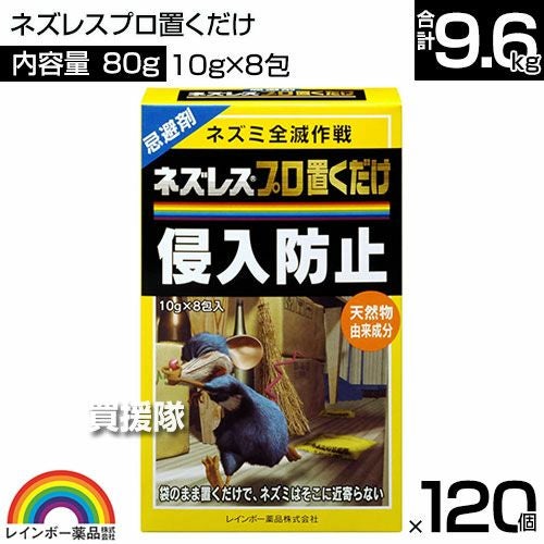 他の画像を見る 【送料無料】ネズミの嫌がる臭いで、ネズミを寄せつけません レインボー薬品 ネズレスプロ置くだけ (10g×8包)×120個 買援隊 特別価格 ¥ 41,360 税込 カートに入れる お気に入りに登録する