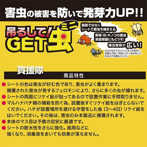 | 家庭菜園、ベランダガーデニングにも最適! | ミニサイズが50枚入ってお得 | 本格園芸、ビニールバウスにも満足の駆除効果を発揮! |