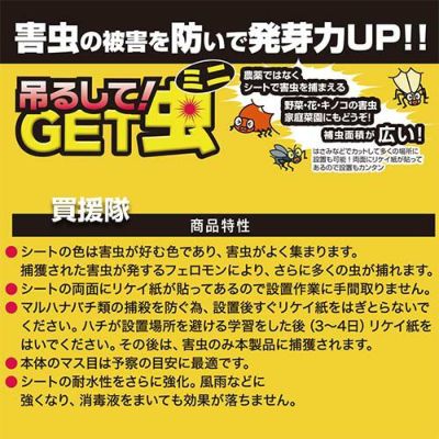 【虫除け 虫よけ グッズ ゲッチュウ 虫取り 害虫 対策 防止 捕虫 粘着 シート シール 紙 安心 安全 ハウス 農業 家庭菜園 向け 作物 野菜 花 植物 減農薬 低コスト 平城商事】
