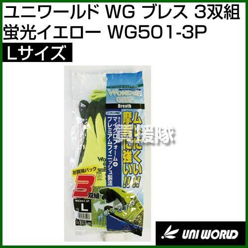 他の画像を見る 【メール便送料無料】耐摩擦性と耐油性にすぐれています。 ユニワールド 手袋 WG ブレス 3双組 蛍光イエロー Lサイズ WG501-3P [カラー:蛍光イエロー] [サイズ:L] 買援隊 特別価格 ¥ 1,110 税込 カートに入れる お気に入りに登録する