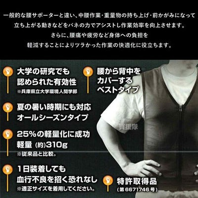 【作業 アシスト スーツ 通気性 男女兼用 メンズ レディース 無動力 腰 腰痛 中腰作業 重量物 持ち上げ 負担 軽減 バネ 強力 アシスト 作業効率 工場 建築現場 土木 荷役作業 農作業 介護】